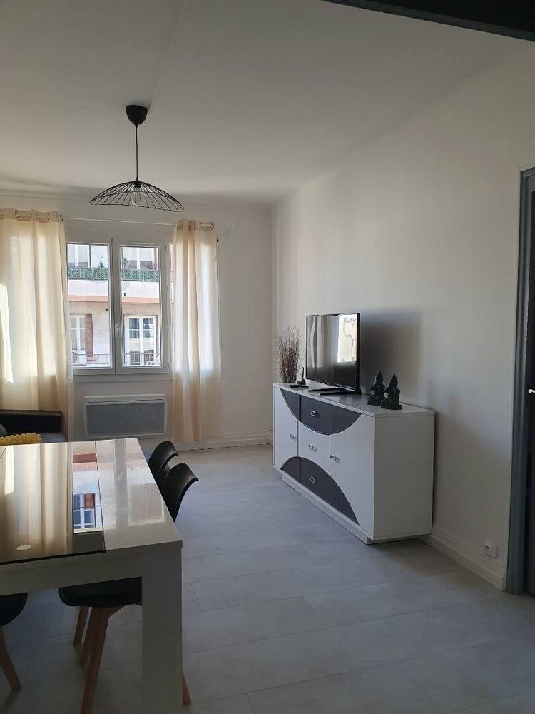 Chambre bien ensoleiller avec un balcon, un bureau, un dressing et une télévision.
