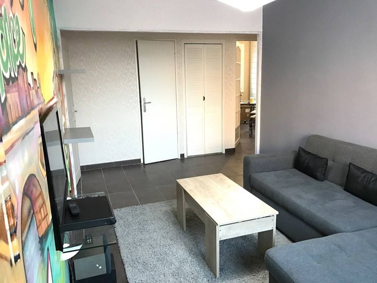 📺 Salon avec canapé 5 places, TV et belle fresque sur Toulouse