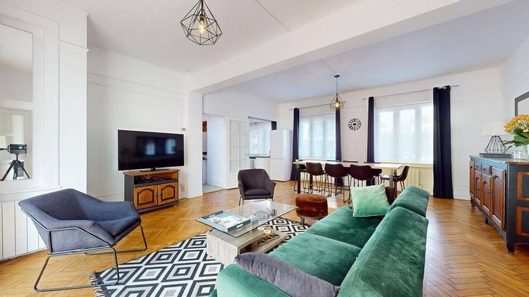 Notre agence vous présente cette colocation meublée de 5 chambres de 190 m² avec jardin au 10 Rue De La Cloche, dans le centre de Tourcoing. LA CHAMBRE La chambre est louée avec un lit double, un bureau, une armoire et une télévision. Le gros + : sa salle d'eau privative ! LES ESPACES COMMUNS Son intérieur compte un salon avec un canapé, une grande table à manger de huit personnes ainsi qu'une télévision. Il y a aussi quatre autres chambres et une cuisine tout équipée : un four, un lave-vaisselle, une machine à café, un micro-ondes et une plaque de cuisson. Une buanderie avec lave-linge est également présente dans cette colocation. Vous pourrez compter sur sa salle de cinéma pour profiter de vos meilleurs films sur grand écran ! Cette maison de six pièces bénéficie d'un chauffage individuel fonctionnant à l'électricité. LES EXTÉRIEURS Un local vélos est disponible dans le bâtiment. Avec un jardin et une terrasse aménagée, gagnez en confort et en espace. LE QUARTIER L'EDHEC Business School se situe à moins de 20 minutes en voiture. Niveau transports, vous trouverez plusieurs lignes de bus, la ligne de métro M2 (Tourcoing Centre) et la ligne de tramway TRAM (Tourcoing Centre) à moins de 500m. La gare de Tourcoing est quant à elle accessible à 14 minutes à pied. Plusieurs axes routiers se trouvent à proximité (A22, N356 et N227). Le cinéma Les Écrans vous attend non loin du logement pour vos loisirs, tout comme une piscine, un conservatoire, une bibliothèque, un théâtre et un tennis. On trouve aussi des restaurants, des commerces, des boulangeries, deux supermarchés, des épiceries et un bureau de poste. Le marché Grand Place anime le quartier. -- Cette colocation est idéale pour les étudiants et / ou jeunes actifs! Bail individuel à la chambre. Pas de caution solidaire. Chacun est libre de partir quand il veut sans se soucier des autres colocs, dès le moment où il respecte un mois de préavis. Éligible aux APL. REFERENCE DU BIEN : SP0758G Les informations sur les risques auxquels ce bien est exposé sont disponibles sur le site Géorisques : www.georisques.gouv.fr