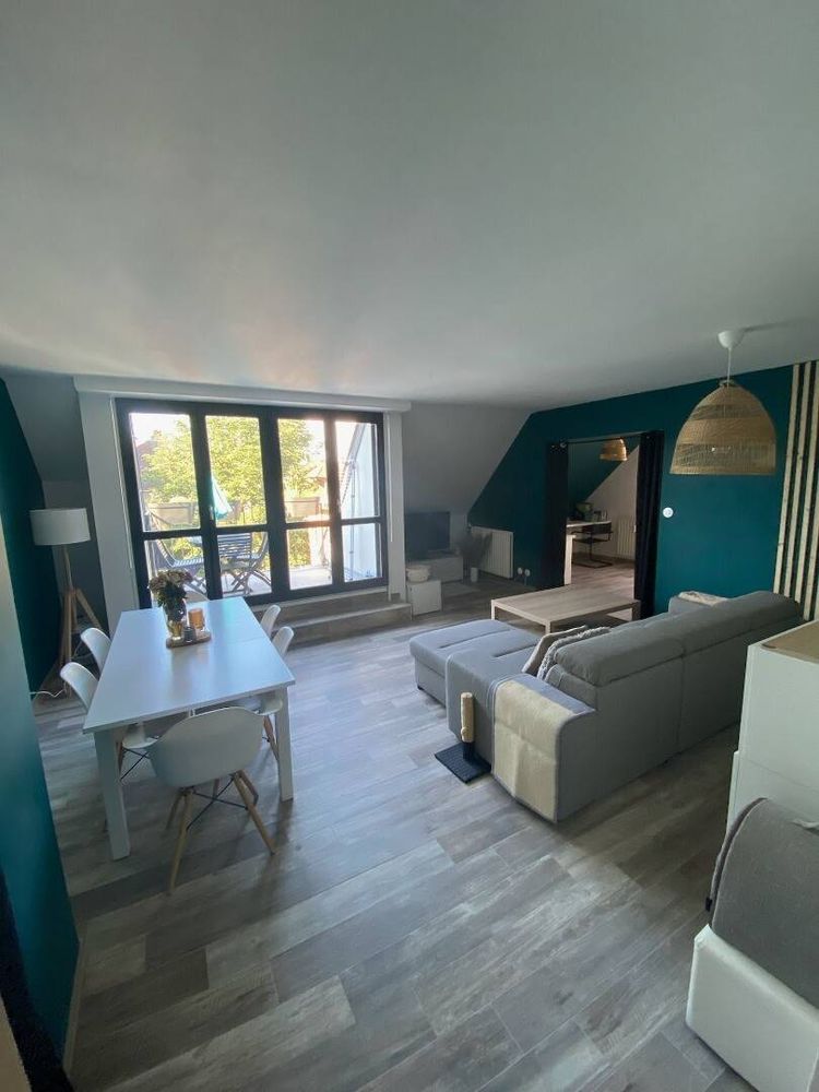 Chambre 1: lit double 140x200 (alèse + couette + oreillers), un chevet avec lampe, bureau avec chaise, grande armoire, petit dressing, luminaire sur pied. La chambre dispose d'une terrasse privative.