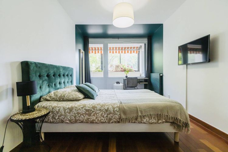 - Chambre confortable et bien insonorisée avec lit double 140x200, TV murale et verrou à code sur la porte pour la sécurité.