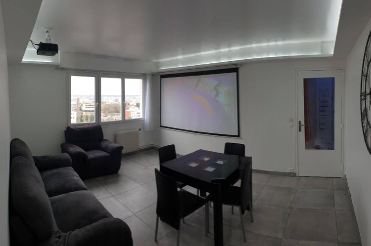 Chambre d'environ 11m2, composée d'un lit double 140cm, d'un bureau et d'une buanderie. Prise réseau et WiFi haut débit (fibre optique) Fenêtre double vitrage et Volets électriques.