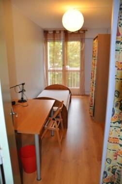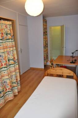 La chambre disponible est meublée d'un lit simple, d'une penderie et d'un bureau avec chaise.