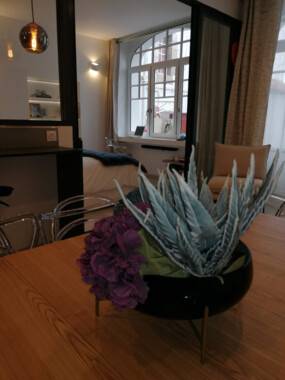 Au rez-de-chaussée donnant dans une petite cour, l’appartement rénové en 2020 est idéal pour un couple avec enfants, bail mobilité, deux étudiants en colocation; il se compose de :