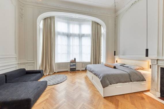 Chambre de 46m² composée d'un lit double, d'un petit bureau, d'une armoire à vêtements, d'une douche, d'un lavabo et d'un WC. En plus de ce bel espace privé, vous bénéficierez d'un magnifique espace commun à partager en coliving avec les autres occupants de la maison. L'espace commun et les escaliers sont nettoyés chaque semaine par notre équipe. 1.250€ + 180 charges (les charges comprennent le gaz, l'électricité, l'eau, l'internet, la télévision, l'utilisation du fitness et du sauna, le nettoyage des parties communes).
