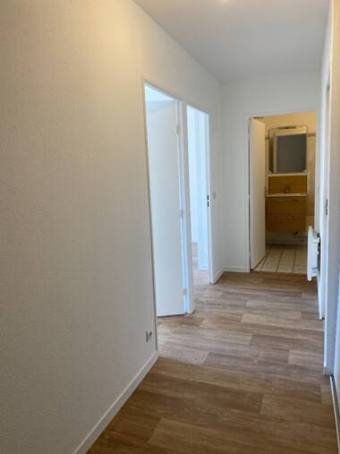 L’appartement est composé d’une entrée avec un grand placard/penderie, desservant sur la gauche le séjour de 22m² donnant sur balcon ainsi qu’une cuisine aménagée indépendante de