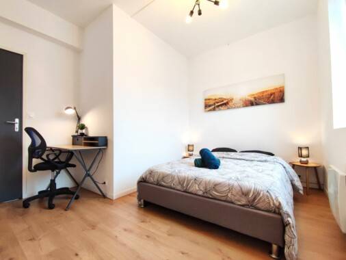 Chambre Secunda - 9 m² - 1er étage côté cour Lit simple, dressing, bureau et chaise