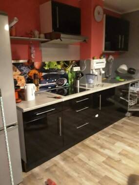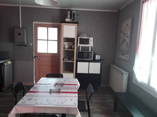 Grande cuisine équipée, ensoleillée, équipée plaque induction, four multifonctions, frigo congélateur, lave vaisselle.