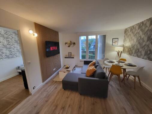 🛏️ Un lit double 140x200 avec matelas de qualité (épaisseur 20cm, densité 45Kg/m²) 🚪 Un dressing et un espace de travail fonctionnel et lumineux 😴 Linge de lit fournis (draps, couette, serviettes)