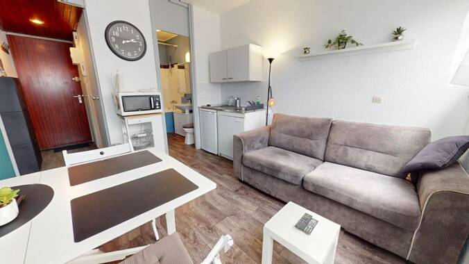 Notre agence vous présente ce studio de 16,6 m² au 171 Rue Ma Campagne (Tourcoing, 59200), à côté du tramway TRAM (Ma Campagne). 🏡 L’APPARTEMENT Cet appartement lumineux, grâce à une grande fenêtre, offre divers espaces bien aménagés : Un séjour accueillant équipé d'un canapé convertible, d'une table à manger avec ses deux chaises, d'une table basse et d'une télévision. Un coin cuisine fonctionnel comprenant un évier, des plaques de cuisson, un réfrigérateur, un micro-ondes et des rangements. Une entrée pratique avec un miroir et plusieurs espaces de rangement. Une salle de bain complète ce logement avec une baignoire, un WC, un lavabo, un miroir et des rangements. Ce studio est idéal pour un cadre de vie confortable et organisé. Il se situe au rez-de-chaussée d'un immeuble. 🌲 LES EXTÉRIEURS Le bâtiment comporte un local vélos. Ce studio est agrémenté d'un jardin. Pour votre véhicule, il est à louer avec une place de parking. Un gardien est présent. 🏘️ LE QUARTIER Pour vos courses alimentaires, vous trouverez un Lidl à seulement 10 minutes du logement. Les étudiants apprécieront la proximité de l'INST Avicenne des Sciences Humaines accessibles en 10 minutes en transport (Ligne BRTT). Une petite faim ? Les restaurants Come Pizza et Tout Feu tout flamme sont situés à proximité du logement, offrant des options délicieuses pour satisfaire vos petites faims. 🚉 Au niveau des transports, vous trouverez les arrêts suivants à proximité du 171 Rue Ma Campagne : Ma Campagne - Ligne BRTT - 4 minutes Point Central - Ligne 30 - 7 minutes Carliers - Ligne M2 - 11 minutes REFERENCE DU BIEN : SP6069B Les informations sur les risques auxquels ce bien est exposé sont disponibles sur le site Géorisques : http://www.georisques.gouv.fr/