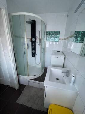 1 salle de bain avec machine à laver