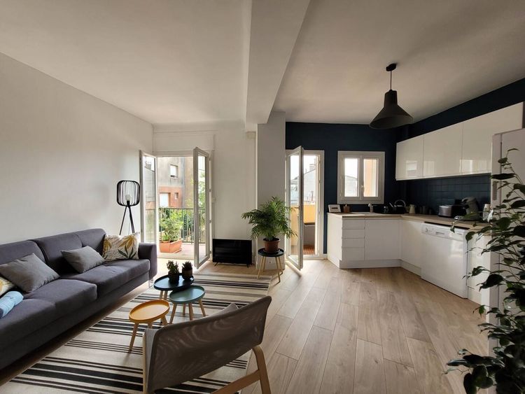 Chambre MARINE: Cette chambre hyper cosy a été décorée avec des meubles en bois et blanc. Elle comprend tout ce qui est nécessaire à la vie d'un étudiant ou d'un travailleur en home-office: - 1 lit double de 140x200 1 table de nuit - 1 petit bureau avec une chaise confortable - 1 dressing - 1 fauteuil pour la lecture - beaucoup de luminaires Les 2 gros avantages de cette chambre ensoleillée: un accès direct sur le grand balcon et orientée au calme côté cour. Vous partagerez la salle de douche avec la personne qui occupe la chambre ARDEA. Elle est composée de: - 2 meubles-lavabos - 1 douche avec paroi vitrée - du lave-linge de l'appartement Dans le séjour, vous bénéficiez en plus d'une étagère complète dans le placard garde-manger. Dans l'entrée, vous trouverez également un placard à chaussures. Pour terminer, vous pourrez stocker votre valise, votre vélo ou trottinette dans la cave. Dans l'appartement, il y a aussi 1 WC et un lave-linge.