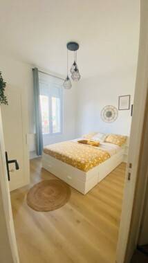 Chambre lumineuse, avec vue, dégagée, Superficie de 9 m² qui comprend : - Un lit double 140cm avec tête de lit - Couette, oreiller, parures de lit, Plaid - Armoire 3 portes avec miroir - Bureau avec chaise - Porte avec serrure