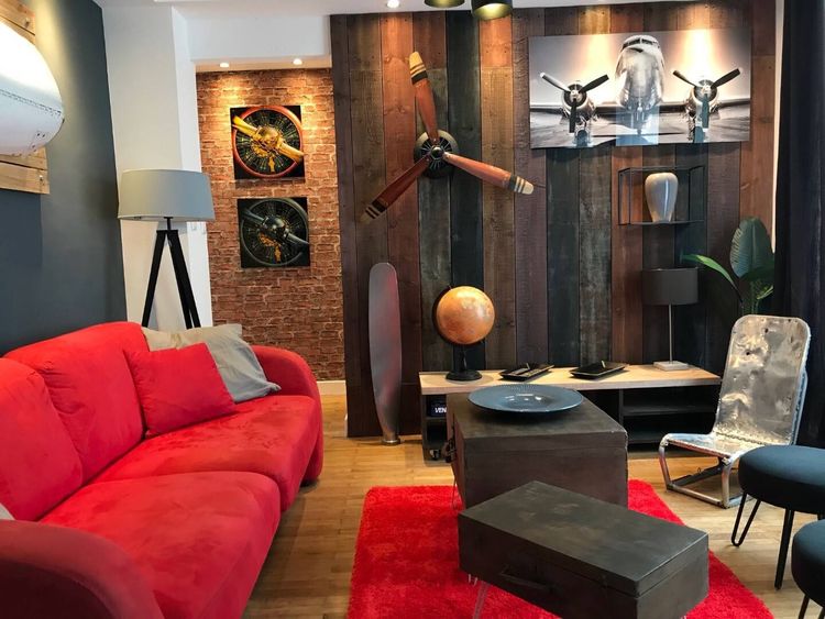 LA PARTIE COMMUNE DU LOGEMENT : LA CUISINE : 🍽️ Belle cuisine lumineuse entièrement aménagée et équipée ouverte sur le salon • Grand réfrigérateur congélateur, lave-vaisselle, four, micro-onde, plaque, hotte, machine à café , grille-pain • Tous les ustensiles nécessaires dont vous pourriez avoir besoin (assiettes, couverts, verre, etc...) • Un coin repas pour 4 personnes LE SALON • Un canapé 🛋️, tables basses et une TV 140cm 4K avec une box TV. LES SALLES D’EAU 🚿• Vous disposez de 2 salles d’eau avec douche et 1 WC 🚽