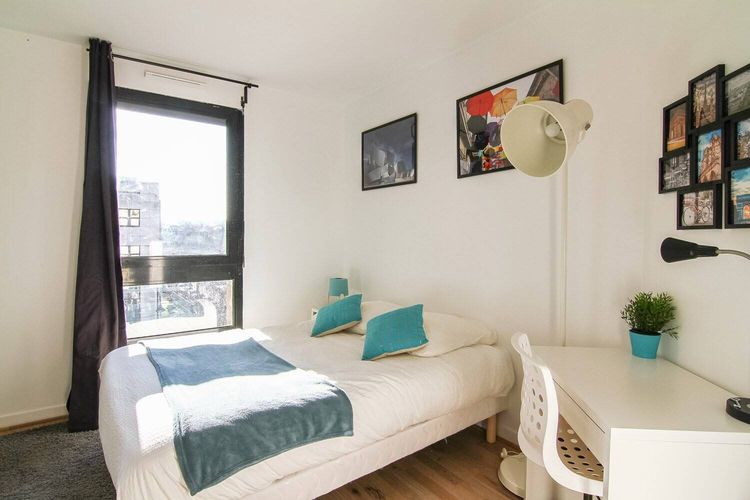 Chambre de 10m², entièrement meublée. Elle dispose d’un lit double (140x190) accompagné d'une table de chevet avec lampe. Un espace de travail est disponible, composé d'un bureau avec chaise et lampe. La chambre propose également plusieurs rangements : une armoire avec penderie et une étagère. L'atout de cette chambre est son accès au balcon. Situé dans le quartier Les Martinets, cet appartement de 136m² bénéficie d’un emplacement idéal, à deux pas du centre commercial Le Patio et de la station de RER et à proximité de toutes les commodités. L’appartement se trouve au 3ème étage d’un immeuble sécurisé avec digicodes et disposant d’un ascenseur. L'appartement se compose de 6 chambres, une cuisine, une buanderie, une salle de bain, une salle d’eau et un WC séparé. Toutes les pièces sont entièrement équipées et meublées. Le tout agencé et décoré avec soin. La cuisine est équipée d’électroménagers neufs et de qualité. Elle contient, un réfrigérateur, des plaques de cuisson, une hotte, un four, un micro-onde, une machine à café, une bouilloire, un grille-pain et un lave-vaisselle. Un espace avec une table et des chaises est disponible ainsi que divers rangements. La buanderie dispose d’un lave-linge et d’un sèche-linge et tous les équipements nécessaires pour le ménage (balai, serpillère, aspirateur). La salle de bain dispose d’une baignoire, d’un lavabo et de rangements. La salle d’eau dispose d’une douche et d’un lavabo et de rangements. Le loyer comprend une provision sur charges : électricité, eau, chauffage, internet et l'assurance habitation. Le logement est éligible aux APL (bail individuel).