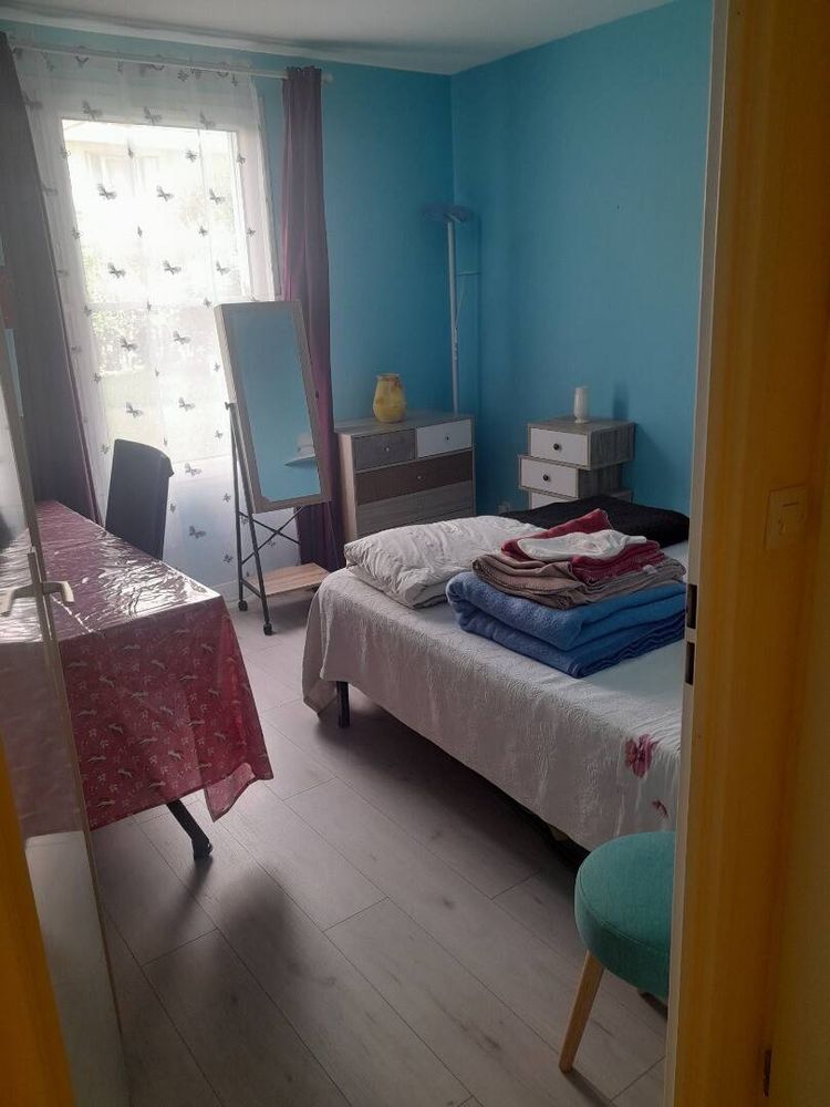 Chambre entièrement rénovée l'année dernière exposée au Nord (top en temps de canicule!) dont la fenêtre donne sur une cour végétalisée éloignée de l'allée qui dessert l'entrée des deux halls. Elle jouxte la salle de bains et ma chambre. J'y installerai une grande armoire à deux battants coulissants munis de miroirs qui est actuellement stockée dans mon box. Bureau à acheter.
