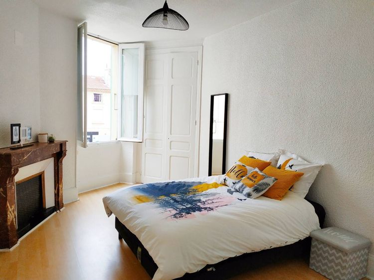 1 Sommier de format 140*190 1 Matelas de 30 cm 1 draps-housse, 1 potège matelas 1 couette, 1 housse de couette 2 oreillers, 2 taies d’oreiller, 1 tableau, 2 décorations sur la cheminée 1 bureau, 1 chaise, 1 lampe de bureau 1 boite de rangement/pouf 2 tables de nuit 1 armoire, 4 suspensions murales en forme de goutte, 2 stores occultants 1 chauffage électrique, 1 plafonnier un accès au WIFI 1 fenêtre neuve en double vitrage