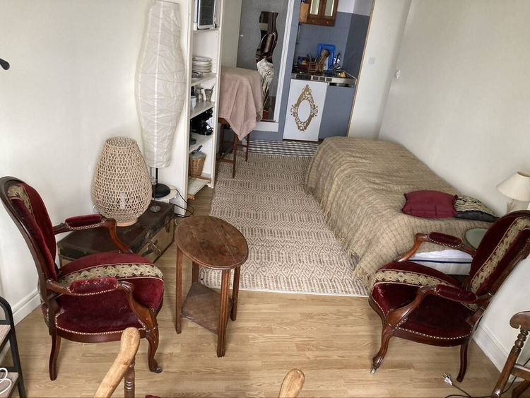 entrée,wc, stu dio ,kitchenette équipée, plaques,évier, frigidaire, microondes, four,lit