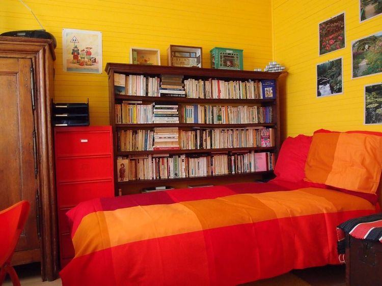 La chambre est très lumineuse et bien orientée. Elle propose une surface d’environ 9 m2, avec une literie de 90 X 190, un bureau d’architecte, une armoire avec quatre rayonnages, un meuble de bureau avec 5 casiers individuels, une grande malle vide, des éléments de rangement pour l’organisation du bureau : casiers, pots à crayons… Lampe de chevet, plafonnier. La chambre est agréablement décorée. La connection WI-FI est assurée. Les sanitaires se situent juste à côté de la chambre. Ils sont partagées ainsi que la salle de bain, où un espace vous est réservé.