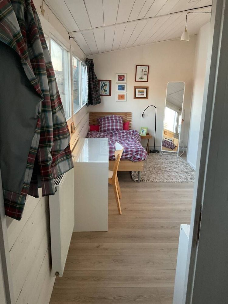 Grande chambres très lumineuse avec vue dégagée sur le jardin, rangements, penderie, bureau et lit de 140 La salle de douche et la cuisine sont au meme niveau et sont partagés avec une autre étudiante. Vous avec accès a la maison et au grand jardin toute la journée. Nous avons 1 chien et 2 chats