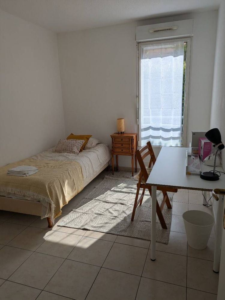 Belle chambre lumineuse, elle est confortable pour dormir, y étudier, grâce à sa climatisation réversible. Meublée d'une penderie, un lit confortable, d'un bureau, avec lampe avec internet haut débit, tout est fait pour un confort maximum. vous n'avez plus qu'à déposer vos affaires.