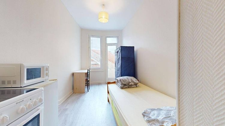 STUDIO AVEC BALCON À côté du tramway Jaude (ligne A), nous sommes ravis de vous proposer ce studio de 14 m² en location au 7 Rue Nestor Perret (Clermont-Ferrand, 63000). 🏠 L'APPARTEMENT Ce studio dispose de tout le nécessaire : Une kitchenette avec four, réfrigérateur, plaques de cuisson, micro-ondes et hotte ; Un lit, une table d'appoint ; Un bureau avec une chaise ; Un meuble de rangement ; Une salle d'eau avec meuble vasque, douche et miroir ; Des toilettes séparées. Il possède un chauffage individuel électrique, la fibre y est disponible, pour un accès internet haut débit. Il se situe au 3e étage d'un immeuble. 🌳 LES EXTÉRIEURS Un petit balcon offre à cet appartement un supplément d'espace appréciable et une vue dégagée. 📍 LE QUARTIER L'appartement est idéalement situé en plein centre-ville, à deux pas de la place de Jaude et des commerces (supermarché à 100m). Côté transports, le tram A à 200m (arrêt Jaude) et les nombreux bus desservant la zone permettent de rejoindre la gare en moins de 15 minutes. Les universités sont facilement accessibles : IAE Clermont à 5 minutes de transports Campus des Cezeaux (IUT, STAPS...) à 20 minutes de transports Faculté de médecine à 15 minutes de transports Facultés de lettres et sciences humaines à 7 minutes de transports. Appartement éligible aux APL. REFERENCE DU BIEN : SP2184E