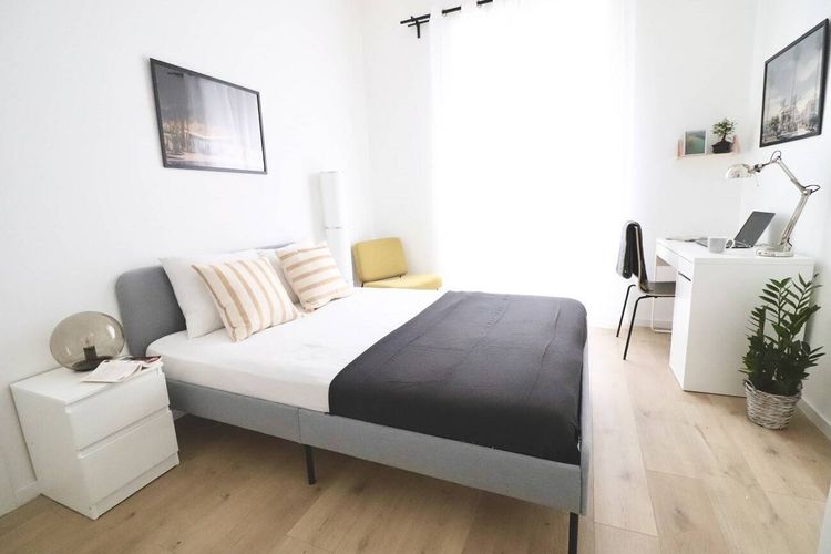 Private bedroom (~13 m²) with desk, chair and wardrobe. Shares 2 bathrooms with flatmates. Access to shared living areas and equipped kitchen.