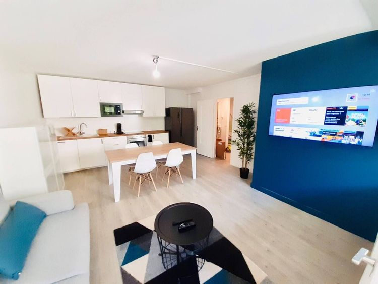 Chambre lumineuse avec une porte-fenêtre qui donne accès au balcon-loggia. Equipée d’un lit 2 places (lit gigogne avec matelas de qualité, d’un dressing, d’un espace de travail avec prise RJ45 (internet fibre) et un bureau.