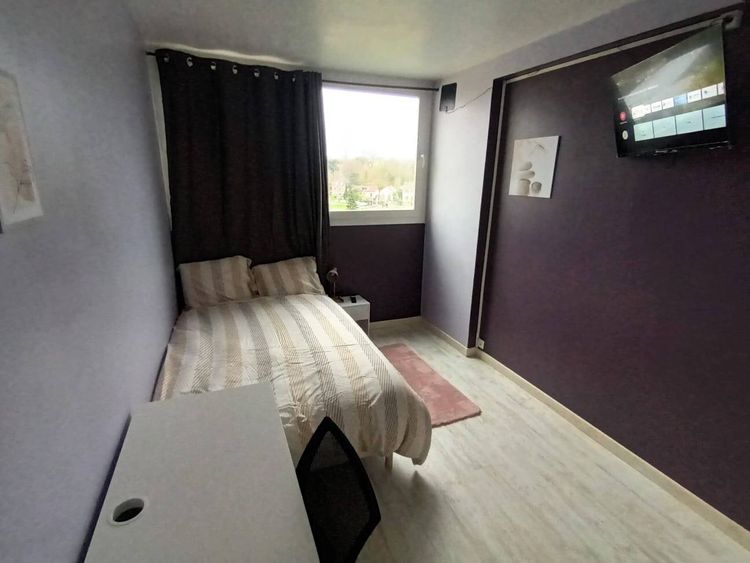 Description de la chambre : Chambre privée meublée de 11 m², lumineuse et fonctionnelle. Elle comprend : Un lit double confortable avec matelas de qualité Une smart TV Un bureau avec chaise, idéal pour le télétravail ou les études Une penderie et rangements pour vos affaires Une lampe de chevet Serrure individuelle avec clé pour plus d'intimité La chambre est aménagée avec goût, dans un style moderne et épuré, parfaite pour s’installer directement sans avoir à investir dans du mobilier. Internet fibre optique disponible dans la chambre.