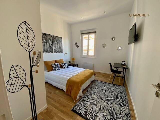 La chambre comprend un lit double (couples acceptés), table de nuit, luminaire d'appoint, dressing/placard/rangements intégré, bureau, fauteuil et télévision. Une décoration plein de charme sera vous séduire (voir photo associé), vous n'avez plus qu'à poser vos valises et profiter de cet havre de paix.