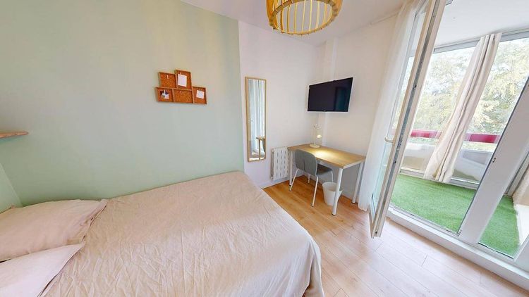 APPARTEMENT 4 PIÈCES ENTIEREMENT RENOVE AVEC VERANDA 📍Au pied de l'arrêt de tramway La Marègue (ligne A), venez découvrir au 13 Rue Du 8 Mai 1945 à Cenon (33150) cette colocation de 3 chambres de 69 m². 💤LA CHAMBRE Cette chambre est équipée d'une douche privative, d'un lit double, d'un bureau, d'une chaise, d'une télévision murale, d'un meuble vasque et d'un accès à la véranda. Un gros plus : Vous disposez également d'une TV et d'un abonnement à Netflix. 🛋LES ESPACES COMMUNS L'appartement se présente avec un couloir d'entrée long qui distribue l'ensemble des pièces. Vous commencez par le cellier, équipé d'une machine à laver. En continuant jusqu'au bout du couloir, vous accédez au salon, meublé d'un canapé, d'une table basse, d'une télévision murale, d'une table à manger avec quatre chaises, et d'une cuisine ouverte qui comprend un four à micro-ondes, des plaques de cuisson, une hotte, un four, un réfrigérateur et un évier. Cette pièce vous mène également à la première des chambres et à une véranda bordée de baies vitrées. En retournant dans le couloir en direction de l'entrée, vous découvrez les deux autres chambres, les toilettes et la salle de bain, équipée d'une douche et d'un meuble double vasque. Cet appartement est particulièrement adapté aux jeunes actifs et aux étudiants. 🏙LE QUARTIER Vous logerez en plein cœur de Cenon, dans un quartier sûr, à proximité de nombreux commerces et restaurants. Vous êtes à 20 minutes de l'hypercentre de Bordeaux que vous pourrez rejoindre en empruntant la ligne de tram A grâce à l'arrêt La Marègue situé au pied de l'appartement. Vous êtes à 4 arrêts de tramway du centre commercial Carrefour et à 8 arrêts du Campus Bastide. Vous pouvez aussi profiter du cinéma Utopia qui se situe à 2 arrêts de tramway. 💡SERVICES ET ÉQUIPEMENTS Internet Fibre Eau chaude Electricité Eau courante Entretien du jardin Chauffage Entretien de l'immeuble ———————————————————————— Bail individuel à la chambre. Pas de caution solidaire. Chacun est libre de partir quand il veut sans se soucier des autres colocs, dès le moment où il respecte un mois de préavis. Eligible aux APL. REFERENCE DU BIEN : SP8574X