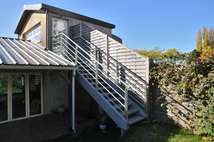 Elle comprend de beaux volumes clairs : séjour 20 m² (canapé lit 2 places + canapé 3 places assises) + terrasse ( 7m²) avec vue dégagée vers l'ouest et l'Erdre, salon (canapé lit 2 places) + kitchenette 26m², mezzanine bois indépendante (lit 2 places) avec velux 6,8 m², SDB (remise à neuf) + WC 5,6m², dégagements.