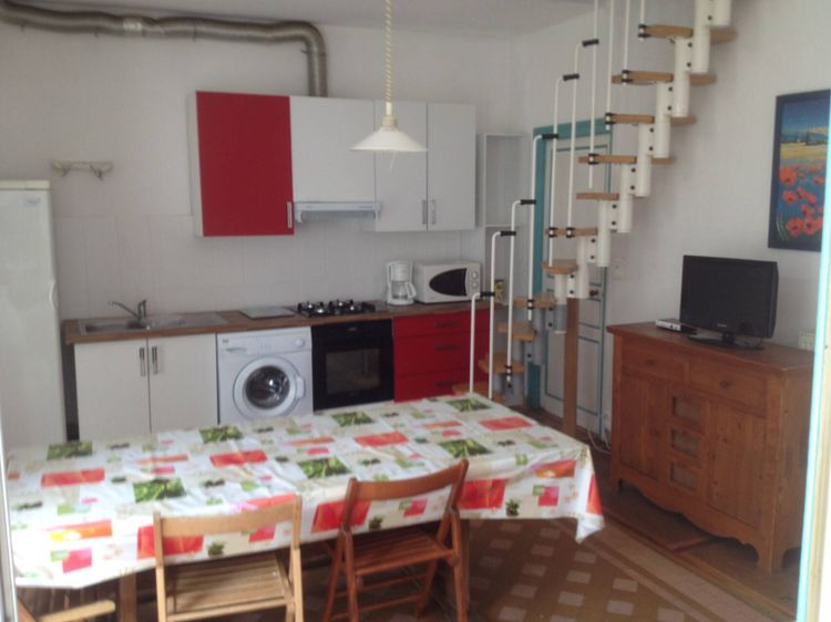 Cette chambre se trouve à l’étage elle est sous comble, le plafond est bas, l’accès se fait par un escalier étroit et raide. Elle comporte un lit de 90 pour une personne un plan de travail une penderie chaise. il y a à l’étage une salle de bain et un toilette séparée pour les trois chambres.