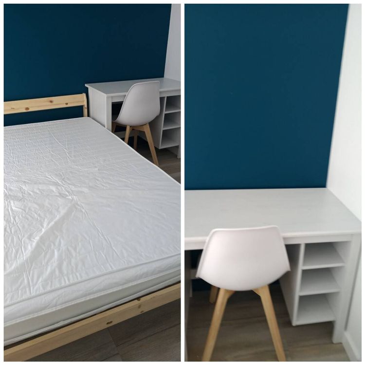 la chambre est équipée d'un lit gigogne, d'une armoire et d'un bureau et communique avec une salle de bain privative.