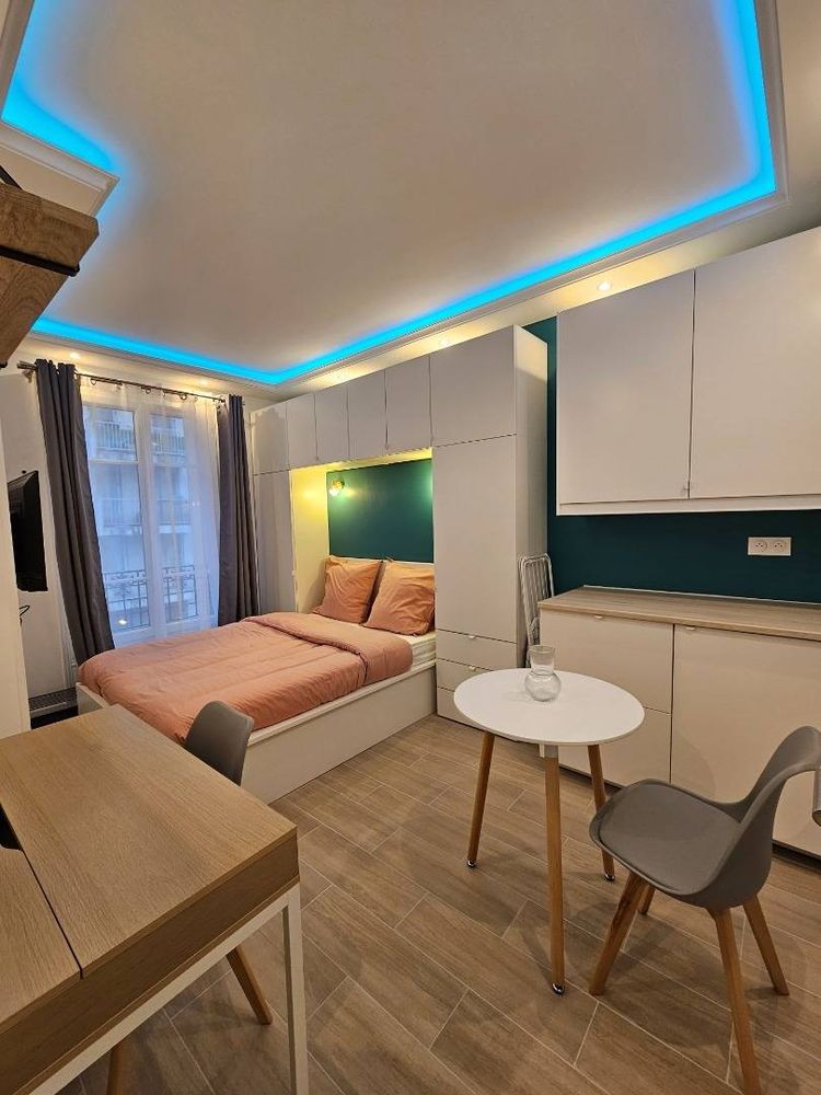 Équipement proposé dans la chambre : - Porte munie d'une serrure - Lit coffre 140x200 - Linge de lit (oreillers, couette et draps) - Dressing (pont de lit) et cintres - Smart TV - Planche à repasser - Étendoir à linge - Bureau, étagère et chaise - Coin repas (table, chaise, plan de travail, garde-manger) - Réfrigérateur / congélateur individuel - Chauffage électrique