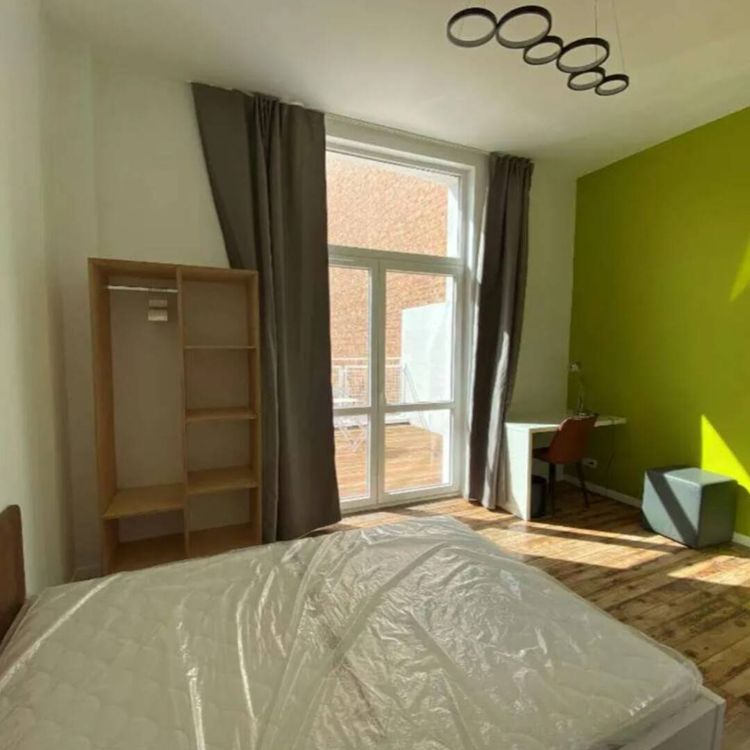 Chambre 5, 18m², 1005€/mois toutes charges comprises. La chambre se situe au 1er étage du côté rue. Elle dispose d’une salle de douche privative et d’une toilette dans la chambre.