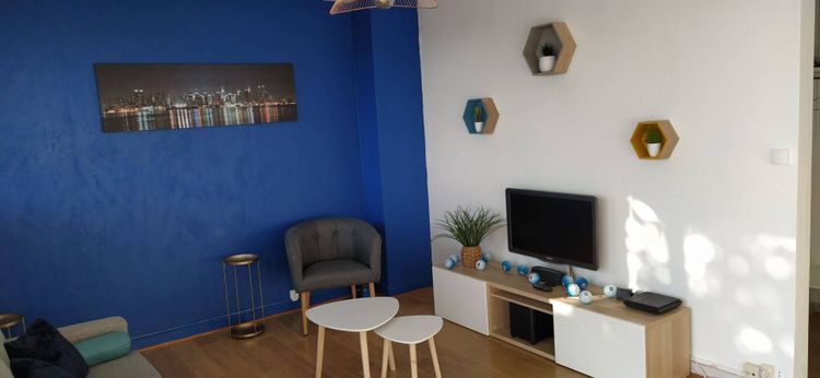 La chambre fait 10m2 , ele orientée au SUD-OUEST, et possède : - un lit 2 places + Linge de lit - table de chevet + lampes - un bureau + chaise de bureau - Une étagère de rangement et un grand dressing.