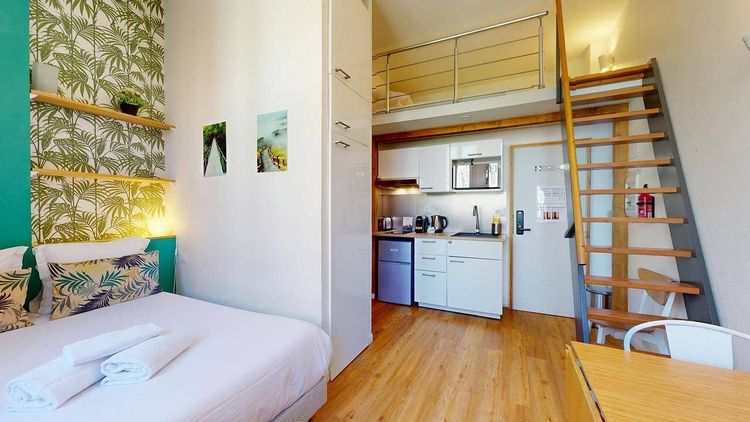 Notre agence vous propose ce studio de 18 m², situé dans la commune de Toulouse au 50 Boulevard De Strasbourg. L'APPARTEMENT Ce superbe studio s'ouvre sur une pièce de vie avec une cuisine équipée d'un petit réfrigérateur avec congélateur, de plaques de cuisson avec une hotte, d'une machine à café, d'une bouilloire, d'un évier, d'un micro-ondes et de rangements. Le coin nuit est aménagé d'un lit double, d'une grande télévision, d'une table avec deux chaises et d'un placard mural. La salle d'eau dispose d'une cabine de douche, d'un meuble vasque, d'un porte-serviettes avec un miroir et de WC. Une mezzanine avec un second lit double vient compléter ce logement. L'appartement possède un chauffage individuel alimenté à l'électricité. Pour un accès internet haut débit, il est raccordé à la fibre optique. Il se situe au 2ᵉ étage d'un immeuble. LES EXTÉRIEURS Un digicode assure un accès sécurisé au bâtiment. LE QUARTIER Une université à proximité : l'université Université Toulouse Capitole. Côté transports en commun, on trouve la gare Toulouse Matabiau ainsi que les lignes B et A du métro. L'aéroport Toulouse-Blagnac est accessible à 7 km. Trois cinémas vous attendent à moins de 10 minutes à pied pour vos loisirs, de même que des théâtres, un bassin de natation et un conservatoire. Il y a aussi des restaurants, un restaurant universitaire, des boulangeries, des commerces, des supermarchés, des supérettes et des épiceries. Deux marchés animent les environs. Ce studio est idéal pour les étudiants et / ou jeunes actifs ! Le diagnostic technique du logement a été réalisé récemment. Le logement dispose d'une étiquette F puisqu'il s'agit d'un logement de petite surface. L'erreur d'affiche sur l'annonce est en cours de correction auprès de notre équipe technique. REFERENCE DU BIEN : SP7883C Les informations sur les risques auxquels ce bien est exposé sont disponibles sur le site Géorisques : www.georisques.gouv.fr Montant estimé des dépenses annuelles d'énergie pour un usage standard : 390.15563103724946 € par an. Prix moyens des énergies indexés sur l'année 2021 (abonnements compris)