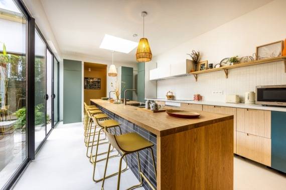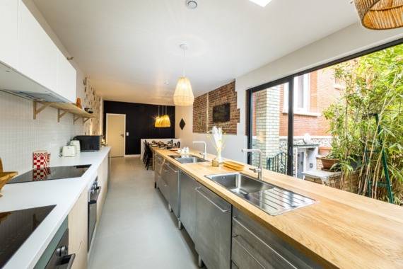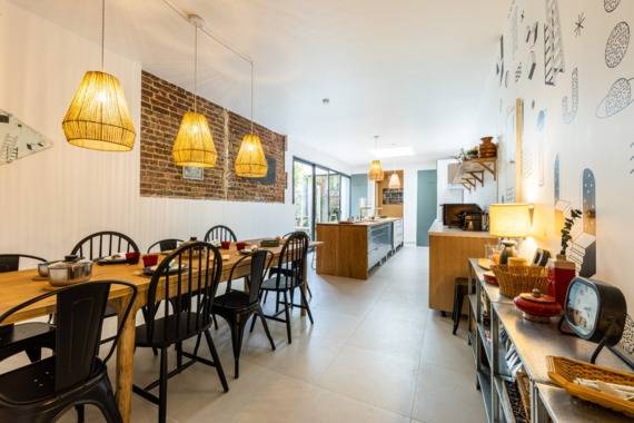 🌞 Des espaces communs généreux : un confortable salon au rez-de-jardin avec une spacieuse salle à manger/cuisine donnant sur la cour intérieure.