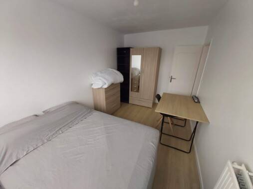 La chambre est situé nord Elle est équipée - d'un lit 140*190. + protège matelas - 2 drap housses - 2 draps - 1 tapis de bain - d'un oreiller + 2 taies - d'une couette avec housse de couette - d'1 commode - d'1 armoire - des rallonges électriques - des multiprises électrique - d'1 planche de bureau sur traiteaux