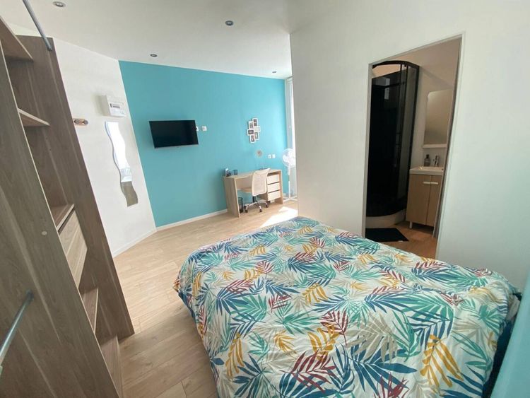 Chambre de 17m² entièrement équipée et meublée (volet électrique, moustiquaire, couette, oreillers, écran plat, grand dressing, bureau...) ainsi que sa SDB et son WC privatif ! Belle cuisine lumineuse avec une belle vue dégagée et ouverte sur un salon cosy (ensemble de 29m²). Autres pièces à votre disposition : - Buanderie avec lave-linge, sèche-linge, ensemble à repasser - Garage pour 2 roues - Jardin (barbecue et ensemble de salon) LOYER de 390€ + 80€ provisions pour charges : eau, électricité, chauffage, internet f