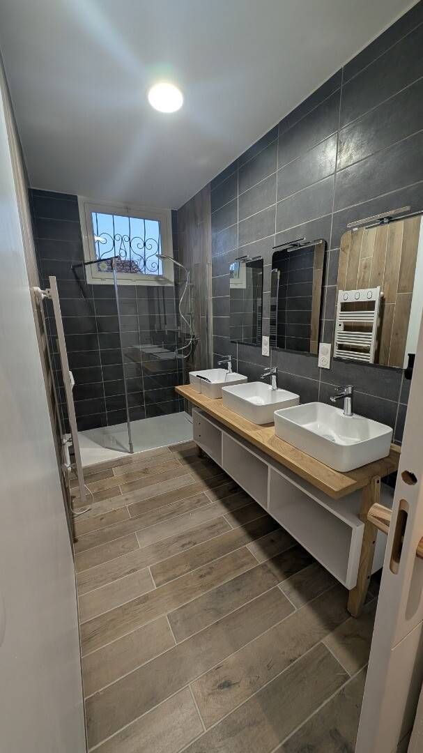 Chambre premium avec salle de bain privée (douche et lavabo). Mobilier complet inclus pour un confort optimal.