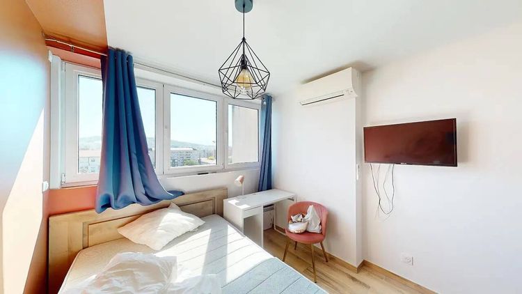 APPARTEMENT 6 PIÈCES AVEC BALCON Venez découvrir cette colocation de 5 chambres de 125 m² localisée au 1 Place De La Libération à Annemasse (74100). LA CHAMBRE La chambre est louée avec un bureau, un lit, une penderie et une télévision. LES ESPACES COMMUNS Cet appartement de 6 pièces s'organise comme suit : un salon avec un canapé, un fauteuil ainsi qu'une télévision, quatre chambres, une cuisine équipée d'un four, d'un lave-vaisselle, d'un micro-ondes ainsi que d'une plaque de cuisson et quatre salles de bains (une équipée d'une douche). Cet appartement possède un chauffage individuel alimenté à l'électricité. La fibre optique y est également installée. Il est situé au 7e étage d'un immeuble avec ascenseur. LES EXTÉRIEURS Une cave offre à cet appartement davantage de possibilités pour s'organiser. Avec un balcon, gagnez en espace et en confort. LE QUARTIER Côté transports, il y a neuf lignes de bus ainsi que la gare Annemasse à moins de 10 minutes à pied. Les autoroutes A40 et A411 sont accessibles à moins de 2 km. Vous trouverez trois cinémas de même que deux bibliothèques dans les environs. Il y a aussi des restaurants, des commerces, des boulangeries, trois supermarchés, une poissonnerie et quatre boucheries. Enfin, le marché Place de la Libération anime les environs. REFERENCE DU BIEN : SP4469F Les informations sur les risques auxquels ce bien est exposé sont disponibles sur le site Géorisques : www.georisques.gouv.fr Montant estimé des dépenses annuelles d'énergie pour un usage standard : 2492 € par an. Prix moyens des énergies indexés sur l'année 2021 (abonnements compris)