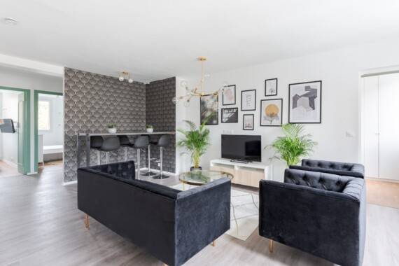 L’appartement de 74 m² est composé de 4 chambres spacieuses et lumineuses, d’une salle de Bain et WC séparés, d’un salon et d’une grande cuisine américaine.