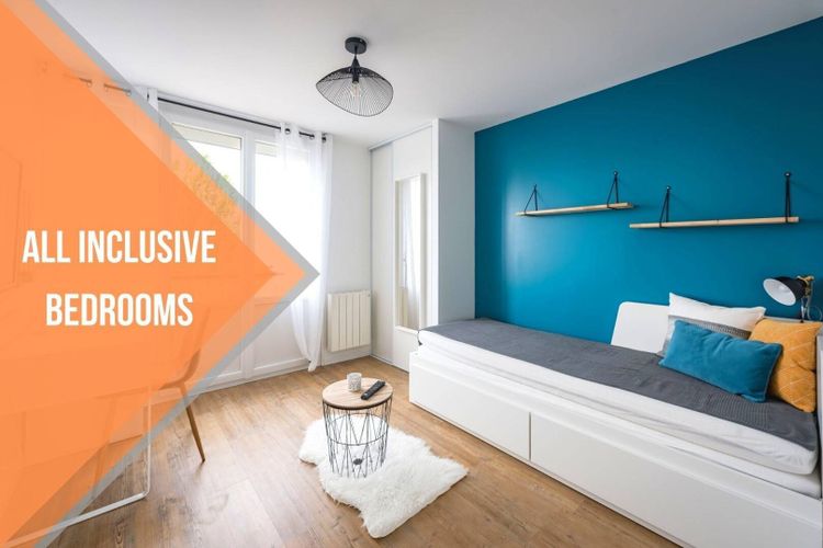 Un lit simple (convertible en deux places) avec tiroir de rangement, un oreiller, une couette, une table basse, un bureau, une chaise, une armoire avec penderie et une TV connectée. Attention, le linge de lit n’est pas fourni vous devez prévoir vos draps personnels. Chambre avec balcon privé ! ---------- A single bed (convertible into two places) with storage drawer, a pillow, a duvet, a coffee table, a desk, a chair, a closet with wardrobe and a connected TV. Please note that bed linen is not provided, you must bring your own sheets. Room with private balcony !