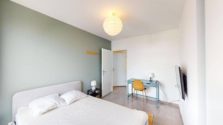 Notre agence vous présente cette colocation 5 chambres de 112 m² située au 10 Rue Daniel Iffla-Osiris à Bordeaux. 🛏 LA CHAMBRE Cette chambre dispose d'un lit double, d'une table de chevet, d'un bureau avec une chaise, d'une grande penderie et d'une TV. 🏠 LES ESPACES COMMUNS Cet appartement s'ouvre sur une entrée avec rangements desservant le spacieux séjour avec cuisine ouverte. Ce dernier dispose d'un canapé, de 2 fauteuils, de tables basses et d'une table avec 5 chaises. La cuisine est équipée d'un four, d'un réfrigérateur avec congélateur, de plaques de cuisson, d'une hotte, d'un lave-vaisselle, d'un évier, d'un micro-ondes, de nombreux rangements et de tout le petit électroménager nécessaire. L'appartement dispose d'une salle de bain comprenant une baignoire avec paroi vitrée et une double vasque ainsi qu'une salle d'eau avec douche et meuble vasque. Les WC sont séparés. Pour une connexion internet haut débit, cet appartement est équipé de la fibre optique. Il est situé au 4ᵉ étage d'un immeuble avec ascenseur. 🌳 LES EXTÉRIEURS Le + de l'appartement : la grande terrasse aménagée pour profiter du soleil ☀️. Le bâtiment comporte un local vélos. 📍 LE QUARTIER L'appartement est idéalement situé à proximité du centre-ville de Bordeaux, à proximité des commerces (supermarché à 200m) et des espaces de loisirs. Côté transports, le tram B à 500m de l'appartement (arrêt Rue Achard) permet de rejoindre le centre-ville de Bordeaux en moins de 15 minutes. De nombreux bus desservent également la zone (lignes 5, 7, 9, 27...). ❤️ Coup de cœur pour cet appartement récent à la localisation idéale. Bail individuel à la chambre. Pas de caution solidaire. Chacun est libre de partir quand il veut sans se soucier des autres colocs, dès le moment où il respecte un mois de préavis. Éligible aux APL. Possibilité de louer une place de parking, se renseigner pour sa disponibilité auprès de l'agence. REFERENCE DU BIEN : SP7134V