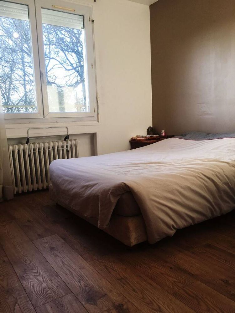 Au mur peinture taupe neuve Sol moquette rasé Grande fenêtre double .double vitrage .volets bois Deux très grands placards jusqu au plafond Table de nuit .2 lampes .lit double .linge de lit