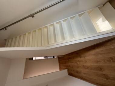 Chambre qui sera meublée au 2ème étage avec lit mezzanine : Meubles : * Matelas confortable * Bureau * Chaise de bureau * Poubelle * garde robe