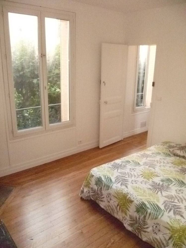 Chambre avec lit double et 2 commodes. Parquet au sol et cheminée en marbre. Charme de l'ancien. Peintures refaites et parquet rénové fin 2024.