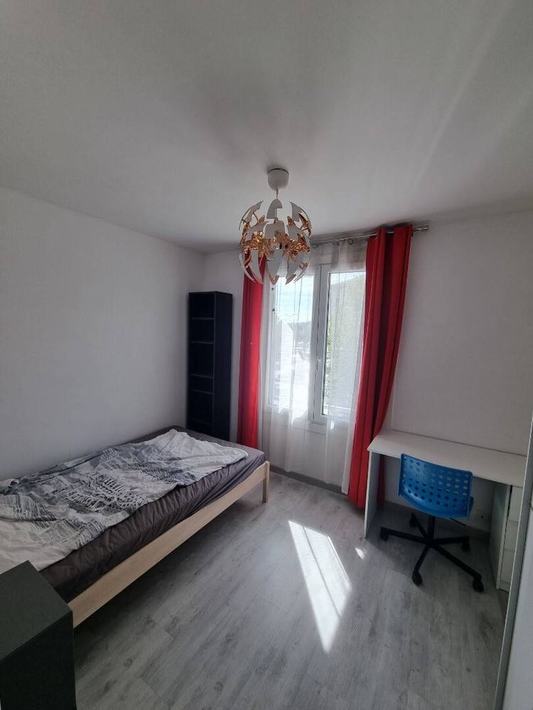 Chambre équipée d'un grand lit simple , d'un bureau et d'une armoire